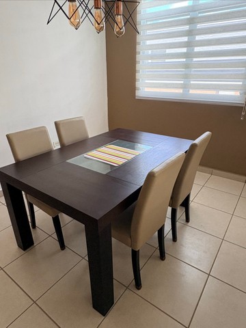 Juego de comedor de 4 sillas en excelente estado. Su diseño minimalista y tonos neutrales lo hacen perfecto para cualquier decoración. Mesa 60x40.
