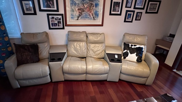 Mueble en cuero para music room. Los laterales son plegables