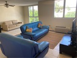 Excelente unidad de departamento en condominio que consta de sala, comedor, área familiar, balcón, cocina equipada, dos recámaras (una Master), dos baños. Se renta con muebles básicos. Acceso controlado, elevador. Como nuevo. Zona tranquila y céntrica. Ubicado a pasos del "downtown" de Ponce. Listo para mudarse. (872) 901-3377