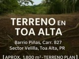 TERRENO EN TOA ALTA [1,800 MC APROX] TERRENO LLANO "Plano" , BARRIO PIÑAS, CARR. 827, SECTOR VELILLA, TOA ALTA PR. *MAS INFORMACIÓN POR WHATSAPP (787) 360-4456 - ALONSO REALTY LIC.13453.