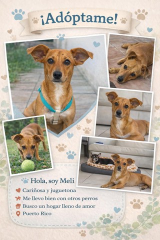 Meli es una perrita rescatada de 1 año de edad y busca una buena persona o familia que la adopte. Se llevo al veterinario, salio negativo a todas las pruebas, vacunada y en lista para esterilizar. Se lleva bien con otros perros y es cariñosa con las personas.Ubicacion: Parque de Escorial
