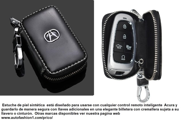 Estuche de piel sintética está diseñado para usarse con cualquier control remoto inteligente Acura y guardarlo de manera segura con llaves adicionales en una elegante funda con cremallera sujeta a su llavero o cinturón. Otras marcas disponibles ver nuestra pagina web www.autofashion1.com/prico/