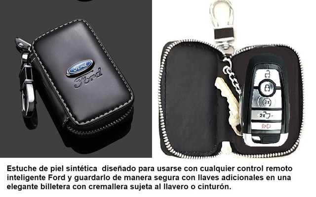 Estuche de piel sintética está diseñado para usarse con cualquier control remoto inteligente Ford y guardarlo de manera segura con llaves adicionales en una elegante funda con cremallera sujeta a su llavero o cinturón. Otras marcas disponibles ver nuestra pagina web www.autofashion1.com/pr/