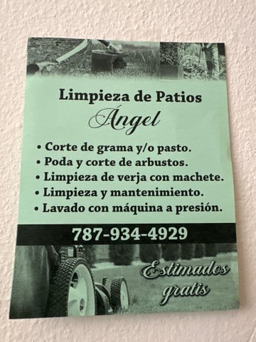 1-Limpieza y mantenimiento de patios2- corte de grama y/o pasto3-Poda y corte de arbustos4- limpieza de asceras,entradas,verjas etc. con máquina de precion